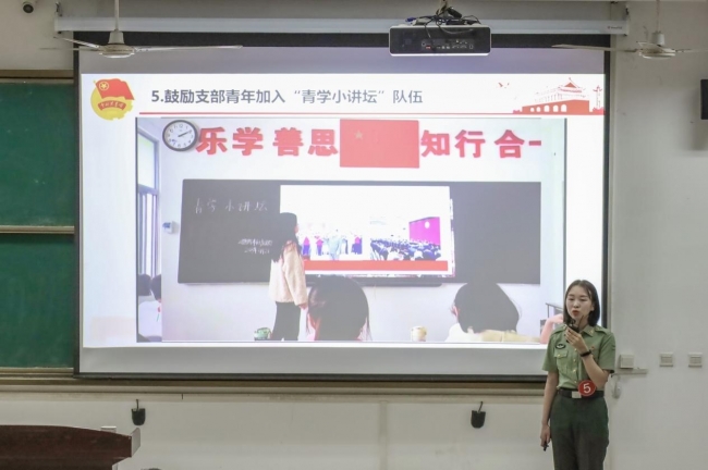 “活力团支部”风采大赛中,选手们围绕团支部建设、团员管理、组织生活、制度落实、作用发挥等方面进行团支部工作的阐述。基层团干们结合自身专业优势,充分利用网络平台,开展了多项特色组织活动,充分展示了团支部的青春活力以及昂扬向上的精神风貌。汇报结束后,各团支部代表针对抽取的团组织基础工作及理论等相关问题进行回答,并对各位评委老师提出的疑虑问题进行细致解答,充分展现了自身良好的综合素质。各支部以饱满的精神状态,全面展示团支部特色风采,在场观众认真聆听,充分汲取经验,用热烈的掌声充分表达了对选手的肯定。