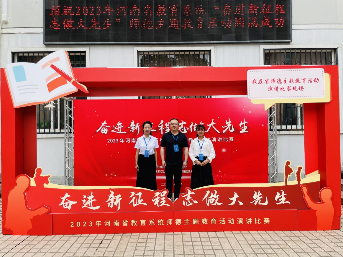 6月16日至18日,由河南省教育厅主办,河南师范大学和河南省师德建设宣传中心承办的全省教育系统“奋进新征程,志做大先生”师德主题教育活动演讲比赛在河南师范大学举行。来自全省普通中小学幼儿园、中等职业学校教师、承担师范生培养任务的高校教师、高等学校师范类专业在校生142名选手参赛。教育学院教师黄琳方、2021级教育技术学专业学生赵允在前期学校的选拔赛中脱颖而出,代表万象城分别参加本次教师组和学生组的比赛。