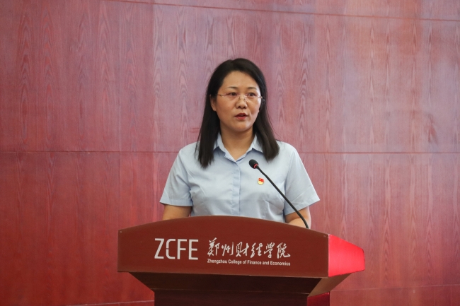 先进党总支代表、机关第二党总支书记胡瑞芝发言。她以“加强自身建设,造就过硬队伍”为主题,从提高站位,凝聚合力谋发展;深入学习,依托载体求实效;立足本职,党建引领促提升;廉洁自律,改进作风强党建四个方面,回顾机关第二党总支的各项党内工作。表示党组织建设还要在适应新形势下党建工作的活动载体和工作方式上不断探索和深化,将以今天的荣誉为鞭策,谦虚谨慎,扎实作风,克难攻坚,砥砺奋进,用实际行动为学校事业高质量发展贡献智慧和力量。