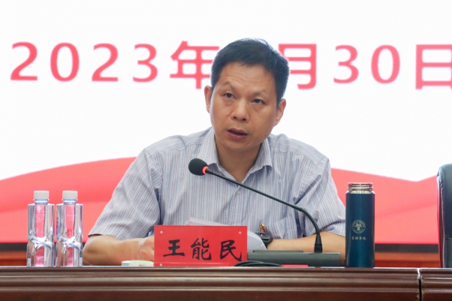 党委副书记、校长王能民发表讲话。他指出,今年是学习贯彻党的二十大精神的开局之年,也是万象城第二次党代会即将召开之年,广大党员师生应铭记光辉历程,坚定理想信念;强化党建引领,积极担当作为;永葆党员本色,传承奋斗精神,牢牢把握时代机遇和学校发展契机,推动学校工作特别是党建工作高质量发展。就学校党建工作他提出三点要求:一是提高政治站位,把牢政治方向。二是强化宗旨意识,坚持师生至上。三是强化实干担当,切实履职尽责。他指出,“道虽迩,不行不至;事虽小,不为不成。”实践表明,每一项事业,无论大小,都是靠脚踏实地、一点一滴干出来的,实干是最朴质的方法论,务实重干是攻坚克难的基石,要以务实重干的工作作风强化履职尽责,在新时代展现新气象、新作为,实现新突破、新发展。