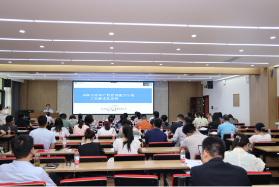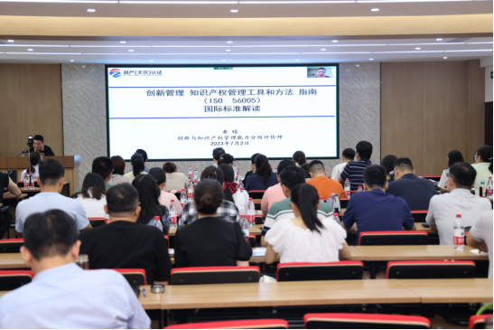 培训环节,知产 (北京) 认证服务有限公司认证审核部部长黄晴、战略研究部部长李建伟,通过通俗易懂的语言、具体生动的案例,先后为学员们讲解了《创新管理-知识产权管理指南 (ISO56005) 》标准解读、创新与知识产权管理能力分级评价指标及实施流程、ISO56005 评价工具介绍、ISO56005 标准认证案例实证等相关知识。培训学员们认真听课,纷纷表示受益匪浅。