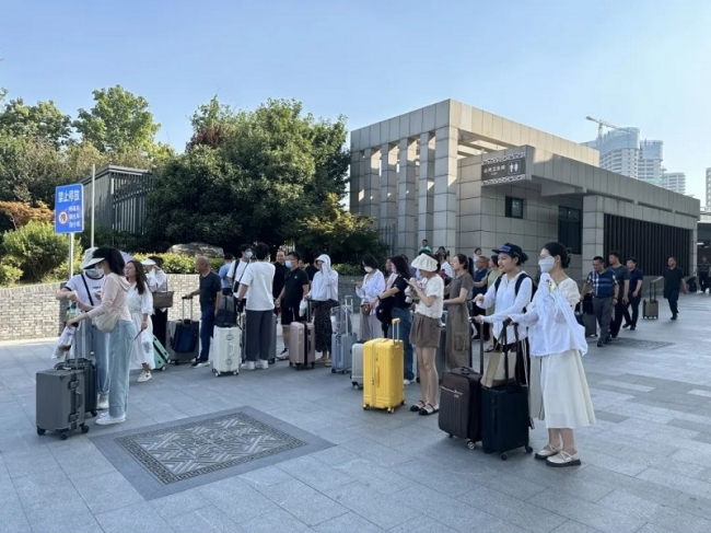 研修班学员集合完毕之后,工作人员耐心地为大家讲解了乘车的相关安排,带领学员们前往大巴车乘车处。