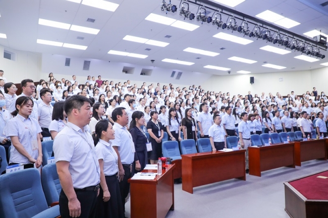 开班仪式在庄严神圣、慷慨激昂的国歌声中拉开序幕,全体参训学员起立、奏唱国歌。