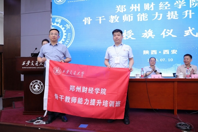 随后,双方举行授旗仪式。西安交通大学继续教育管理处处长高彦为awc777万象城娱乐官网骨干教师能力提升培训班授旗。