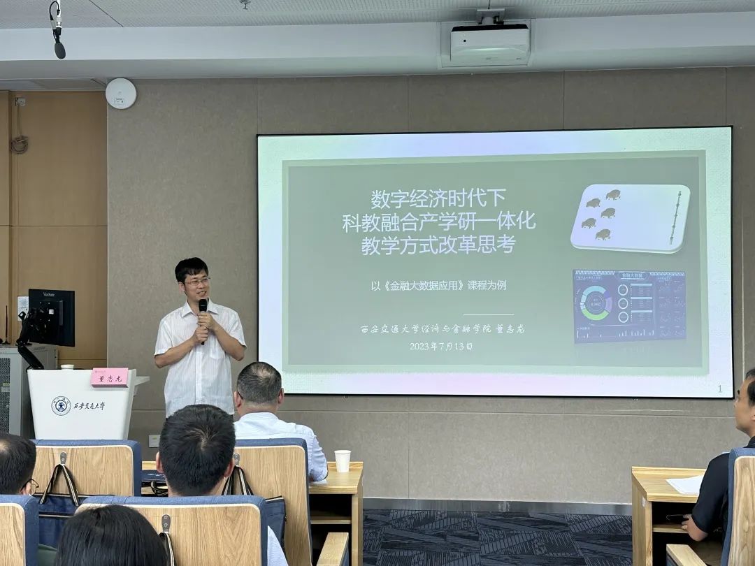 董志龙教授作了《数字经济时代下科教融合产学研一体化教学方式改革思考》的主题报告,他以《金融大数据应用》课程为例,从课程概况、为什么要进行课程创新及课程创新的措施、效果等方面,为我们分享了课程在科教融合产学研一体化方面的成果。董教授的讲座使我深刻认识到金课的创新性、高阶性以及挑战度,作为高校教师,打造受学生欢迎的金课是未来我们努力的目标和方向,接下来我将学以致用,不断增强课程创新意识,积极投入课程创新活动,深化科教融合教学方式改革。