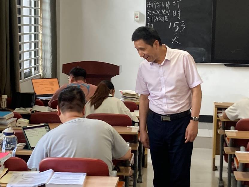7月24日,副校长张顺利前往教室慰问暑期考研留校学生,与同学们亲切交谈,了解学生近一个月的学习情况,鼓励大家要持之以恒,多与老师交流学习上的困惑、择校方面的疑虑,充分利用暑假时间复习,努力提高学习效率。并表示学校是全体考研学子的坚强后盾,有问题可以随时向学院、老师反映,学校将及时提供帮助。