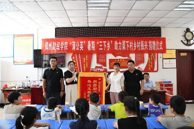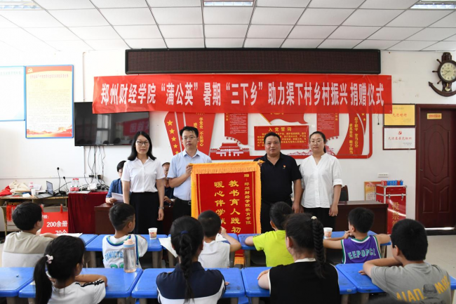 小董乡政府向万象城教育学院“蒲公英”暑期实践团回赠锦旗