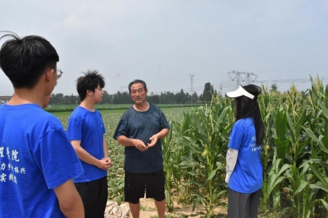 7月24日,实践团在到达上苑村后,在当地农民伯伯的带领下进行了田间观测,了解当地农作物培育情况,并通过先进农业科技设备,如无人机、红外线检测仪等对当地种植的玉米、小麦等作物进行实时监控和数据采集,发现作物生长所遇到的问题,提出了可供参考的改良意见,为当地农业生产发展贡献力量。