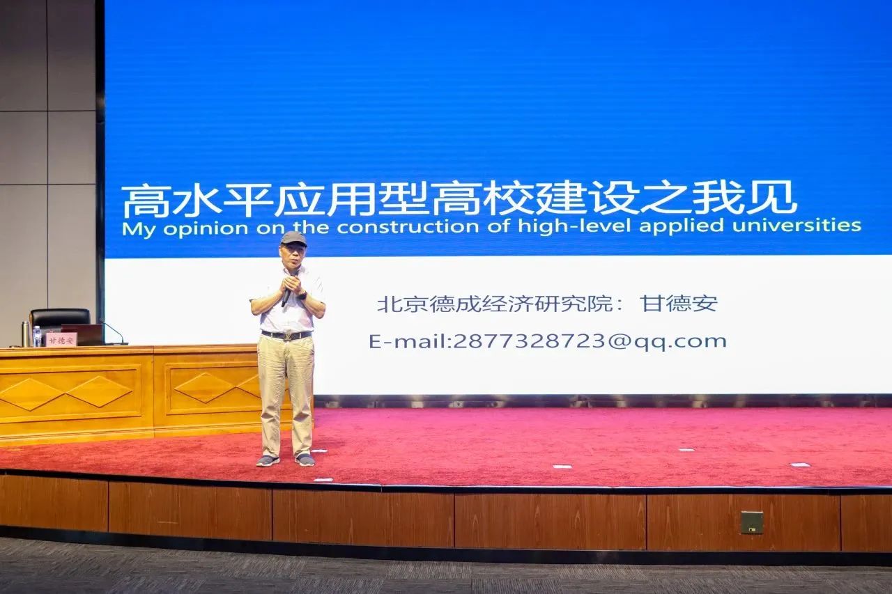 上午,培训班举行了开班仪式,并聆听了河南省委教育工作委员会专职副书记尹洪斌作的开班报告。下午,北京德成经济研究院院长甘德安教授作题为《高水平应用型高校建设之我见》的专题讲座。他结合高水平应用型大学建设背景,基于国内外高校建设和发展的比较,从“高水平应用型高校建设的标准是什么”“高水平应用型高校建设的内核是什么”“高水平应用型高校建设的的若干建议”三个方面全面解读了高水平应用型高校的定位、治理结构及建设高水平应用高校的前提、抓手、人才培养方式和产教融合路径等。