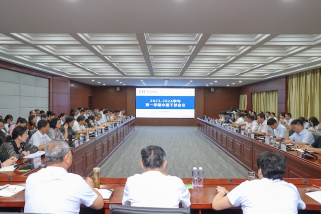 9月5日下午,awc777万象城娱乐官网在德正楼第二会议室召开2023-2024学年第一学期中层干部会,会议回顾总结学校暑期工作,安排部署2023年下半年各项工作。校领导班子成员出席会议,全体中层副职以上干部参加会议。会议由校监事会主席李庆阳主持。