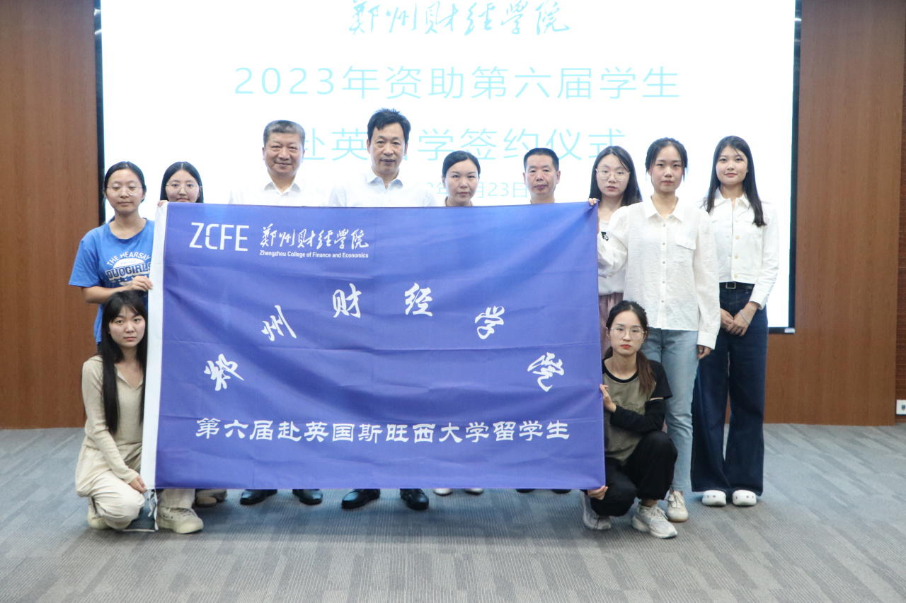 随后,校领导为第六届赴英留学生代表授旗,并与8名学生代表签署协议,合影留念。