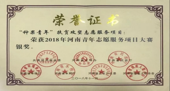 “种果青年”扶贫攻坚志愿服务项目荣获河南省第四届志愿服务大赛银奖