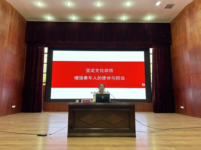 马克思主义学院教师牛晓楠作《坚定文化自信 增强青年人的使命与担当》专题讲座,讲解了“文化自信是什么”“为什么要坚定文化自信”以及“如何坚定文化自信”三个方面,希望同学们能够坚定文化自信,勤学以增智、修德以立身、明辨以正心、笃实以为功,增强青年人的使命与担当。