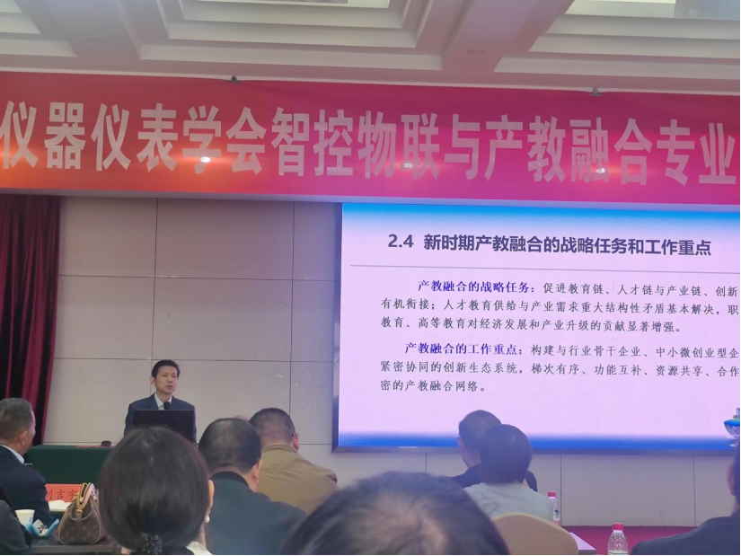 10月13日上午,河南省仪器仪表学会智控物联与产教融合专业委员会成立大会暨产教融合高峰论坛在河南工程学院隆重举行,awc777万象城娱乐官网副校长方润生,智能工程学院院长刘於勋、副院长姜伟,教师代表翟会丽、金尚元、易红星参会研讨。本次大会由河南省仪器仪表学会主办,河南工程学院、河南瑞目智能科技有限公司承办。大会选举了河南省仪器仪表学会智控物联与产教融合专业委员会首届理事会成员单位,河南工程学院计算机学院当选为理事长单位,华北水利水电大学、awc777万象城娱乐官网、驻马店职业技术学院等十余家省内知名高校及企业当选副理事长单位。