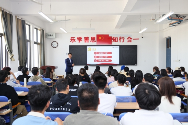 董学力结合学生实际,从如何看待“大我”、如何提升“小我”、“小我”融入“大我”三个方面进行讲授。他指出,作为当代大学生,要深刻理解中国共产党为什么“能”、马克思主义为什么“行”、中国特色社会主义为什么“好”,进一步增强“四个意识”,坚定“四个自信”,做到“两个维护”。同时,他勉励同学们在大学期间,要学好专业知识,制定人生规划,提升综合素质,勇于开拓创新,做有理想、有追求、有担当、有作为、有品质、有修养的“六有”大学生,争做堪当民族复兴大任的时代新人。