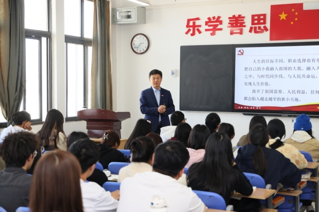 为深入学习贯彻习近平新时代中国特色社会主义思想和党的二十大精神,落实立德树人根本任务,10月20日下午,校党委副书记董学力深入课堂一线,以《把“小我”融入“大我”——做担当民族复兴大任的“六有”大学生》为题,为2023级国际经济与贸易本科1班的学生上了一堂生动的思政课。