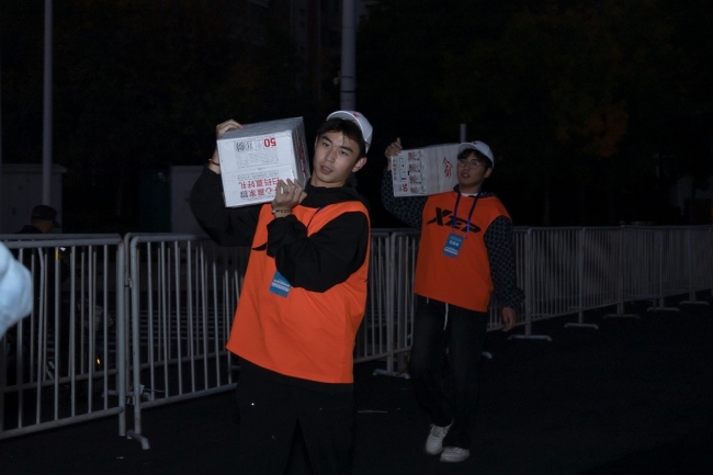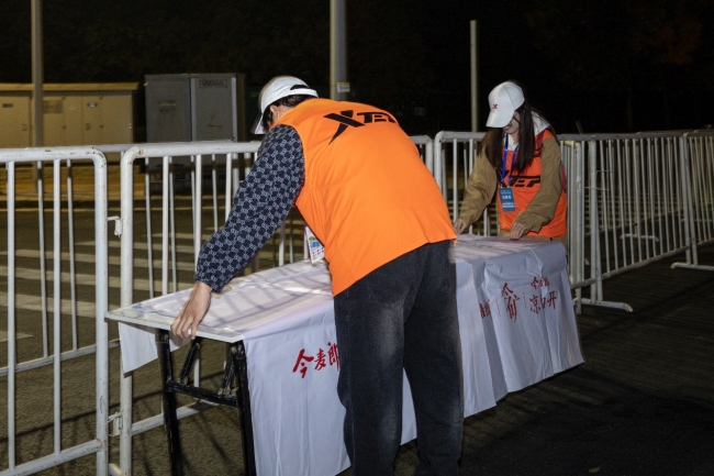 比赛当天,万象城志愿者们身着工作服,佩戴工作证于凌晨四点集合完毕,乘坐大巴分别到达负责的志愿站点,认真清点各站点物资,根据组委会要求,志愿者们按照具体分工各司其职,迅速进入工作状态,有条不紊地开展摆放置物桌、规范物品位置、搭建垃圾区域等前期准备工作,快速完成了沿途服务点的物资分配工作,全体志愿者全面进入工作状态,为正式比赛做好充足准备。