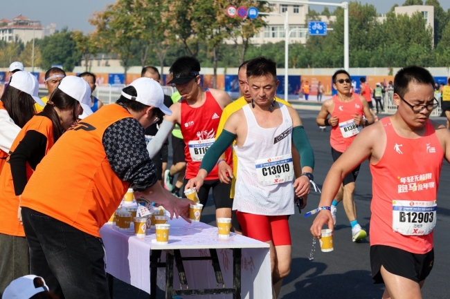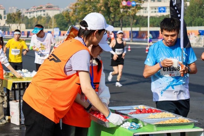 郑州黄河马拉松32.5公里食品补给站志愿组