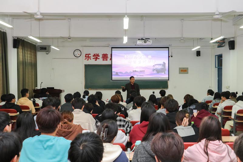 11月8日下午,王能民以《赓续历史文脉,谱写当代华章》为题,分别为2023级酒店管理专升本3班和2023级工商管理1、2班的学生上了一堂别开生面的形势与政策课。
