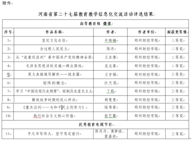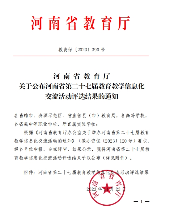 近日,河南省教育厅下发《关于公布河南省第二十七届教育教学信息化交流活动评选结果的通知》(教资保〔2023〕390号)文件,万象城共有11项申报作品获奖,其中二等奖4项,三等奖7项。