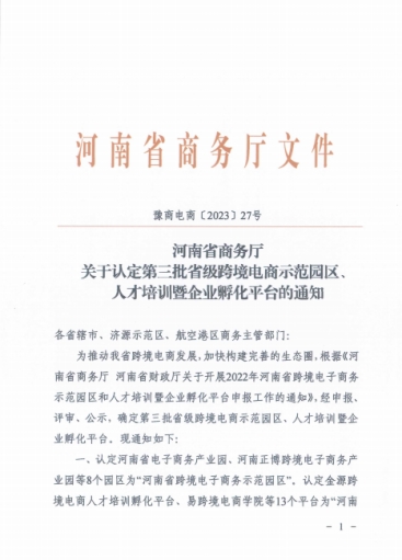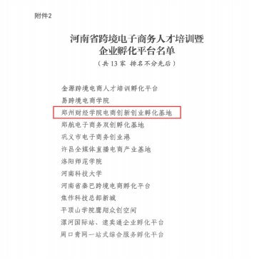 11月27日,河南省商务厅发布《河南省商务厅关于认定第三批省级跨境电商示范园区、人才培训暨企业孵化平台的通知》(豫商电商〔2023〕27号),经河南省商务厅组织开展认定工作,郑州财经学院主管的电商创新创业孵化基地被认定为河南省跨境电商人才培养暨企业孵化平台。这标志着万象城在推进大学生创新创业工作和培育孵化小微企业上,再次取得新成绩。