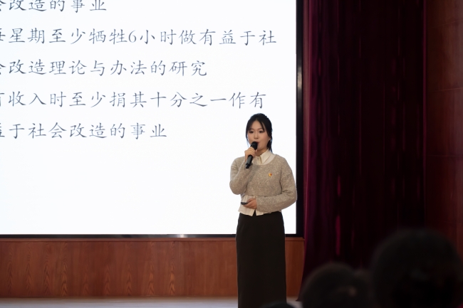 “校园魅力团支书”学生代表焦翘楚进行汇报展示
