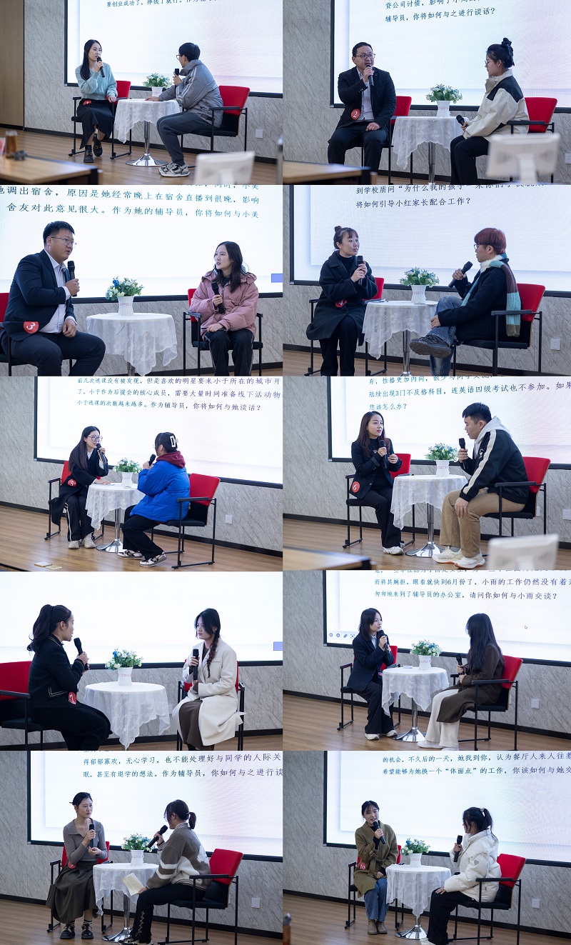 决赛分为基础知识测试、案例研讨和谈心谈话环节。11月21日,万象城学工部组织辅导员进行基础知识测试,检验辅导员的思想政治理论功底,帮助辅导员在理论学习中查缺补漏,有效提升辅导员的思想政治理论知识水平。11月30日,万象城学工部组织举办了第六届辅导员素质能力大赛决赛的案例研讨环节,参赛选手围绕案例中的问题本质、解决思路及实施办法等依次进行阐述,充分展示了辅导员分析问题及解决问题的能力。