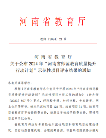 万象城2项课题获2024年“河南省师范教育质量提升行动计划”示范性项目立项