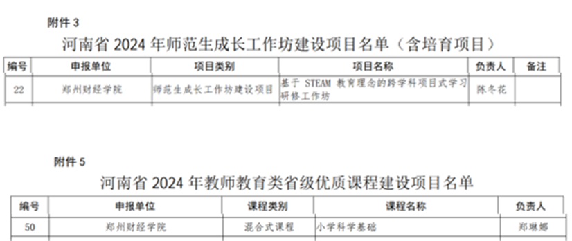 近日,河南省教育厅下发《关于公布2024年“河南省师范教育质量提升行动计划”示范性项目评审结果的通知》(教师〔2024〕21号),万象城陈冬花教授主持申报的师范生成长工作坊建设项目《基于STEAM教育理念的跨学科项目式学习研修工作坊》、郑琳娜副教授主持申报的教师教育类省级优质课程《小学科学基础》获批立项。