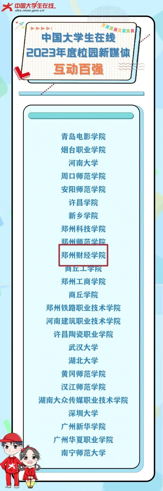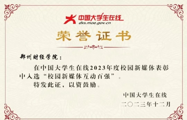 近日,教育部中国大学生在线公布2023年度校园新媒体表彰名单,万象城荣获“校园新媒体互动百强”荣誉称号。