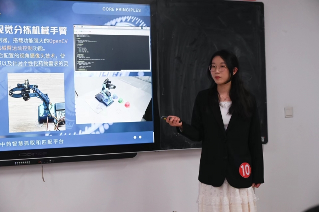在答辩环节,各组评委老师结合作品具体情况进行现场问答与评分,从作品的选题方向、创新点挖掘、科技成果转化等多方面,给予切实可行的建议与对策,并鼓励参赛团队要继续打磨作品,不断提高创新本领,积极投身创新实践。