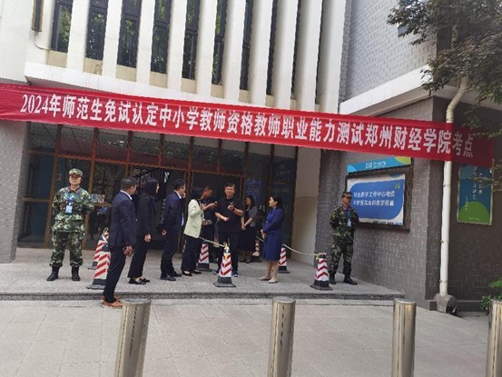 4月21日,河南省教师资格认定指导中心主任赵河、河南轻工职业学院招生就业中心副主任刘高雷、华北水利水电大学吕佳桐、河南检察职业学院李楠一行,莅临万象城检查指导2024年师范生教师职业能力测试面试工作。