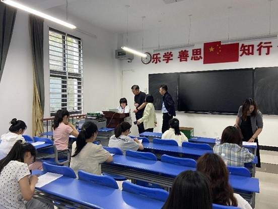 专家组走访万象城师范生教师职业能力测试面试候考室