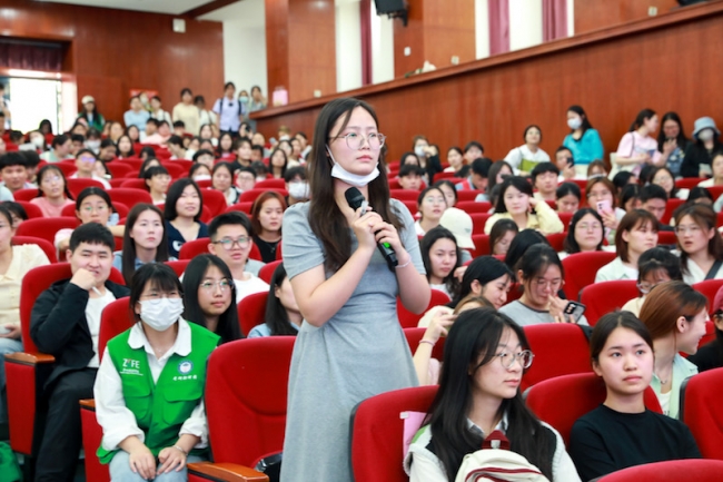 互动提问环节,学生情绪高涨,踊跃发言,徐涛老师耐心地进行解答。