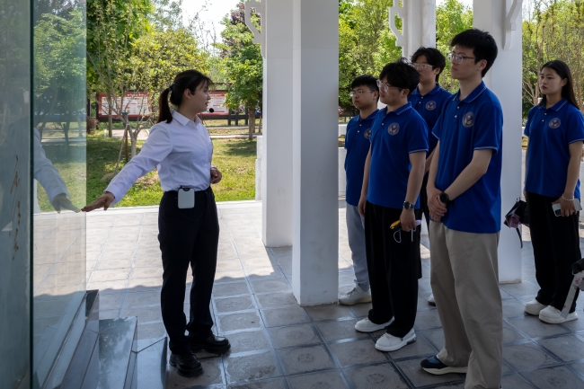最后,在东坝头黄河纪念亭,讲解员带领大家了解东坝头的历史故事,使万象城学子深刻体悟焦裕禄同志为治理黄河付出的心血与汗水。