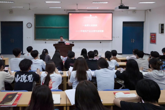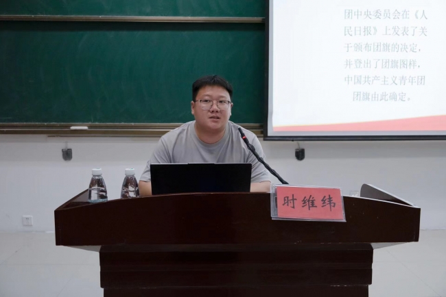 魏玮老师以《中国共产主义青年团的光辉历史与发展历程》为题进行团课培训,从当代青年的理想信念、精神状态、综合素质三个维度展开讲述,激励全体同学坚持“敢”字当头,发扬斗争精神。