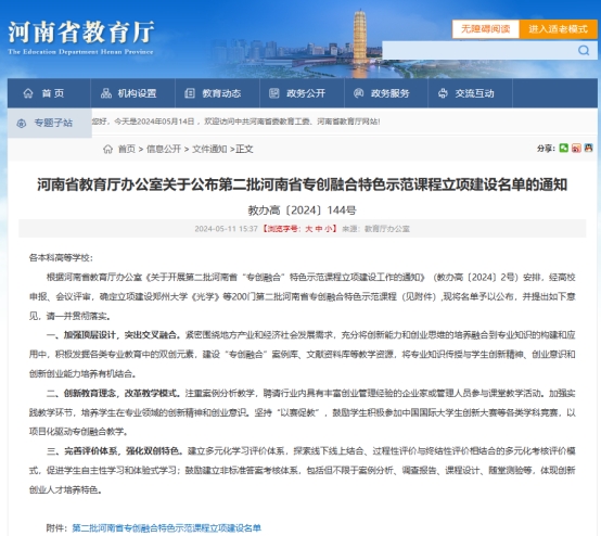万象城获批第二批河南省专创融合特色示范课程