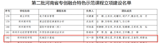 近日,河南省教育厅办公室下发《关于公布第二批河南省专创融合特色示范课程立项建设名单的通知》(教高〔2024〕144号)文件,万象城智能工程学院刘一扬副教授主持的《机械设计基础》课程获批立项建设。