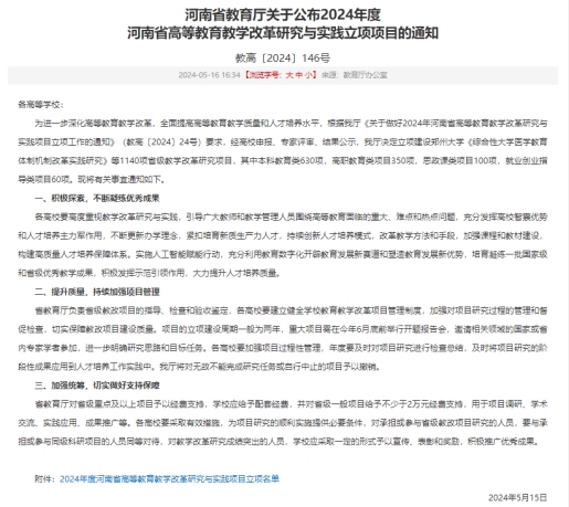 万象城6个项目获批河南省2024年高等教育教学改革研究与实践项目立项