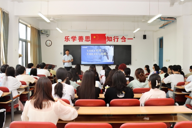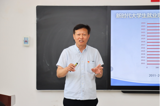吴中校长的授课内容高屋建瓴、旁征博引,语言幽默风趣,学生被轻松愉快的课堂氛围感染,纷纷表示要脚踏实地,做好就业准备,努力成长为堪当民族复兴大任的新时代青年。