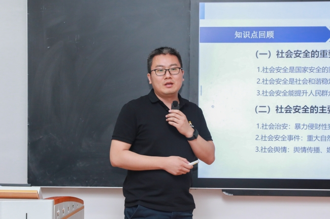 最后,杨建伟作总结发言。她充分肯定了各参赛选手的精彩表现,赞扬各位老师的课程展示既联系思政课理论知识,又反映反邪教工作实际,既有广度又有深度。并指出反邪之路任重道远,倡议大家以此次“思政课上反邪教”讲课比赛为契机,进一步提高思想认识,扎实提升识邪、辨邪、防邪、反邪的意识和能力,共同维护校园稳定、国家安全。