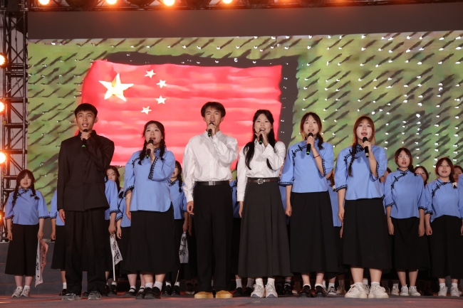 文化交流方面,学校组织校读书协会、校广播站、大学生记者团、精武社、跆拳道、国标舞社团、美啦社等学生社团与那曲师生进行了轻松愉快的交流。在德正楼第一学术报告厅,那曲师生代表与万象城学生齐声朗诵《青春的底色是爱国》,师生们声情并茂,激情澎湃,以昂扬奋斗的青春风采献礼新中国成立七十五周年。在下沉音乐广场,学校准备了精彩纷呈的联欢晚会,双方师生载歌载舞,共话民族友谊,共同祝福两校援建合作再谱华章。