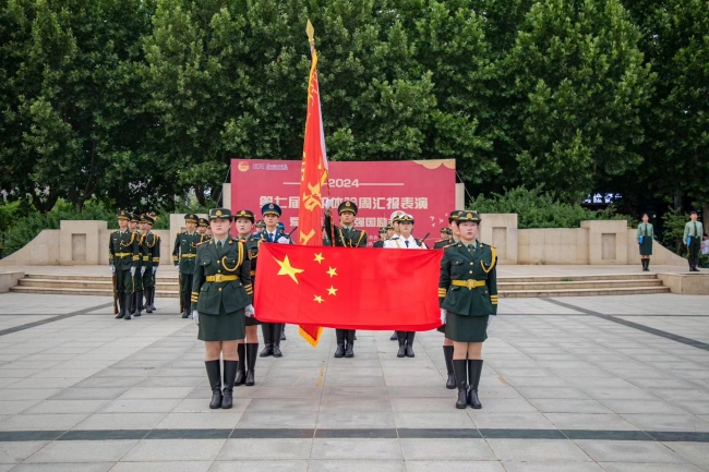 6月3日下午,全体国旗护卫队队员在校文化广场进行汇报演出活动,校团委负责老师和500余名学生一同观看演出。