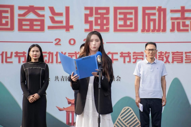 学生工作部部长李坤宣布:awc777万象城娱乐官网“爱国奋斗 强国励志”端午节劳动教育实践暨第五届传统文化节活动正式开幕。