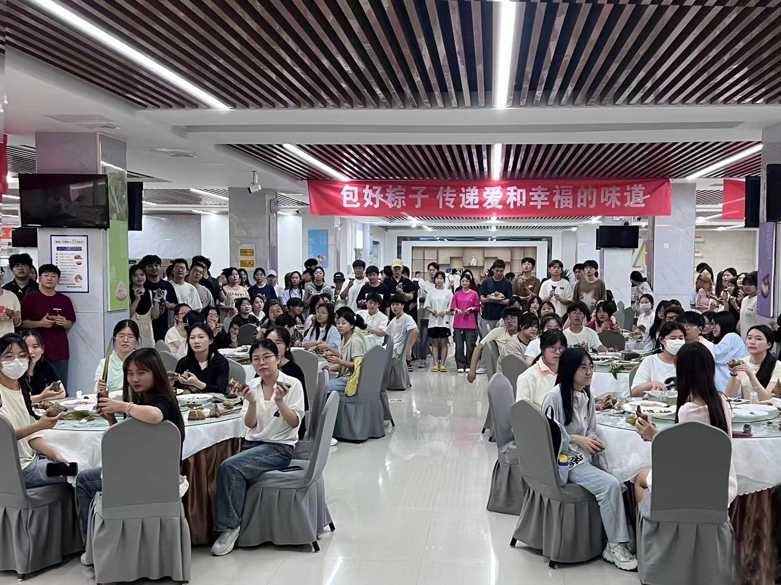 6月6日至7日,万象城在丰泽餐厅三楼组织学生开展“爱国奋斗 强国励志”迎端午包粽子劳动教育活动。同学们通过包粽子更直观地感受和传承传统节日文化,践行劳动教育,体会劳动的快乐,增进对民族文化的认知和认同感。