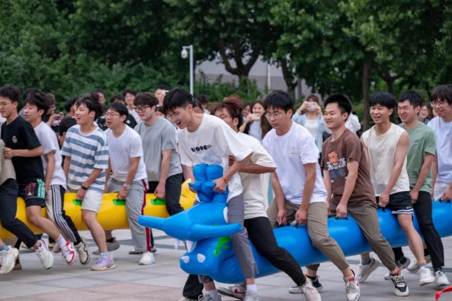 接着,来自各二级学院的12支队伍进行了一场精彩的“旱地龙舟”比赛,选手们竭尽全力,观众加油呐喊,比赛现场节日氛围浓厚,精彩纷呈。