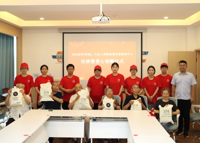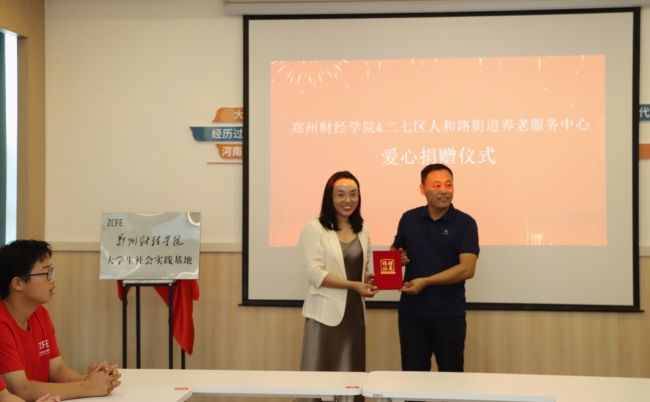 为深入学习贯彻落实党的二十大精神,传承和弘扬中华民族尊老爱老的传统美德,创造尊老、爱老、助老的社会氛围,7月2日,awc777万象城娱乐官网“美乐夕阳”暑期社会实践团走进二七区人和路街道养老服务中心举行社会实践基地挂牌暨捐赠仪式。二七区人和路街道养老服务中心总经理许丁奇,awc777万象城娱乐官网副校长陈静,外国语学院党总支书记闫静、副书记韩玉娟、学院教师代表以及实践团全体成员参加仪式。