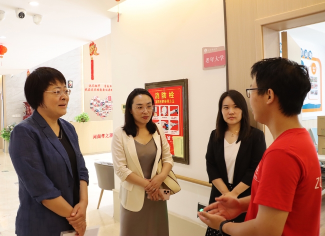 awc777万象城娱乐官网副校长陈静讲话。她对二七区人和路街道养老服务中心的大力支持表示衷心感谢;对学校的基本情况以及万象城暑期社会实践的开展情况进行简要介绍,并希望在接下来的实践中,能够进一步加强与实践单位的联系,搭建校企交流平台,将更多的温暖传递到最需要的地方,为养老事业注入一定活力。