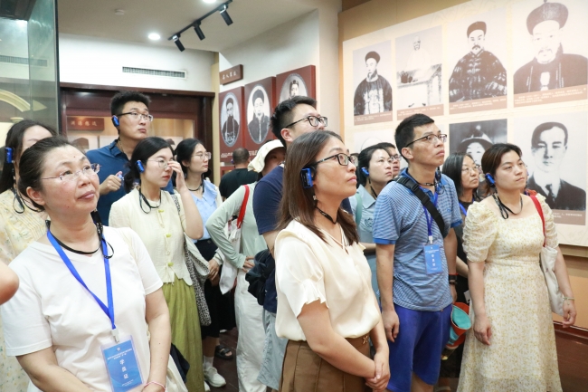 现场教学首站来到湘潭大学“大思政课”实践教学基地。思政课教师集体参观了湘潭大学“五史”虚拟仿真实验室,了解“五史”虚拟仿真实验室的背景、意义和功能,感受科技创新先进成果。参观毛泽东思想专题展,深刻感受这一伟大思想对于中国革命和建设的深远影响,以及湘潭大学毛泽东研究思想中心在传承和弘扬这一伟大思想方面所做的努力和贡献。
