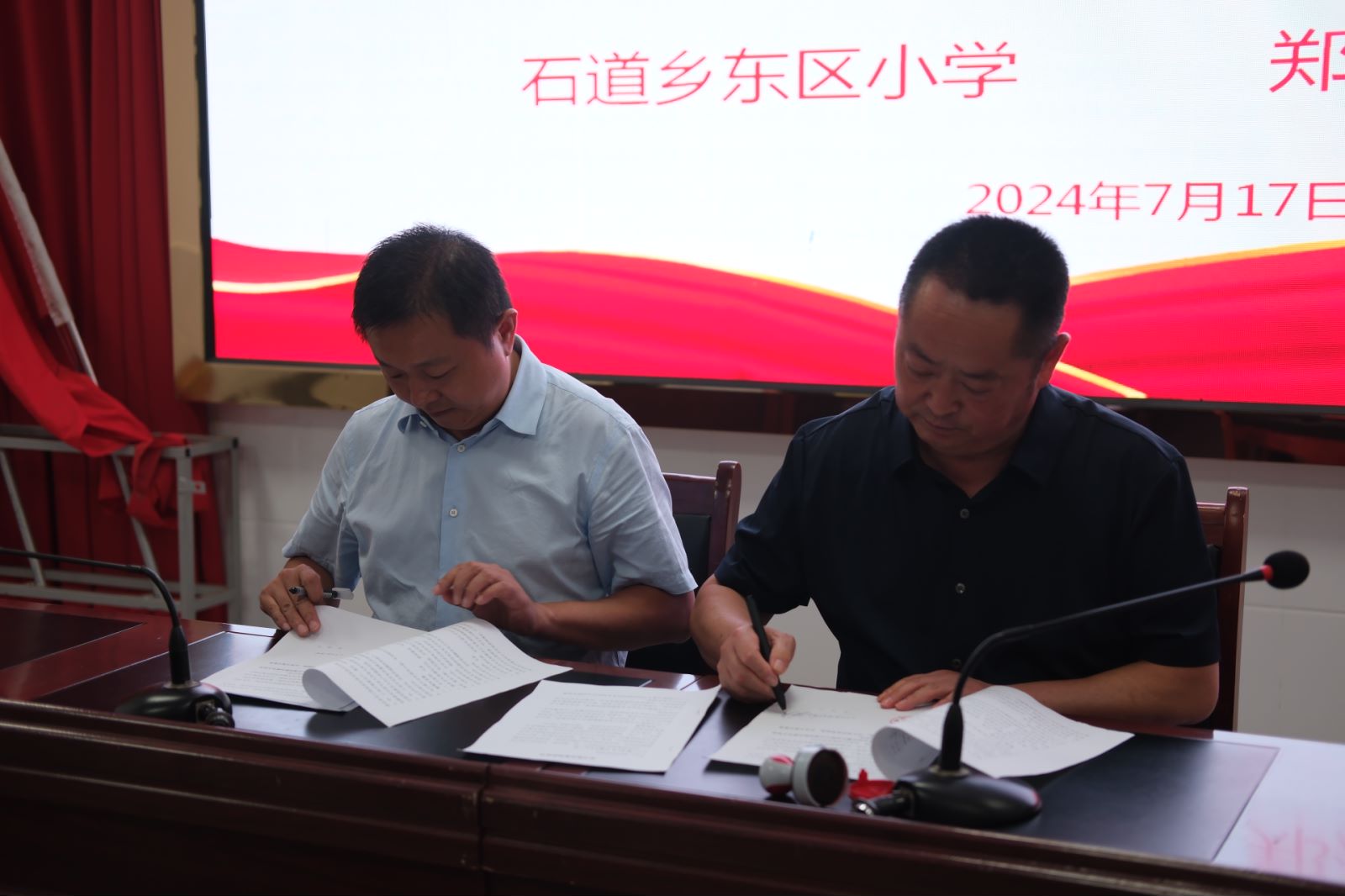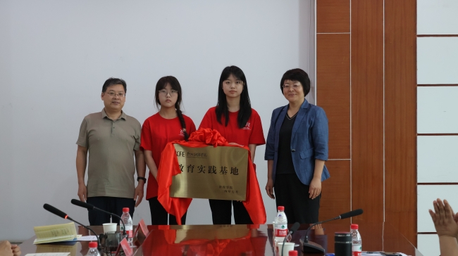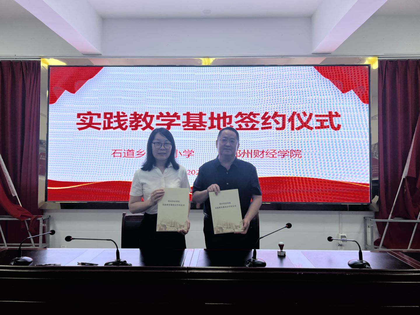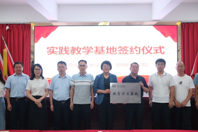 下午,教育学院与登封市石道乡东区小学实践教学和实习就业基地揭牌仪式在石道乡东区小学隆重举行。共青团登封市委副书记刘鹏、石道乡东区小学校长刘辉、副校长陈金良、万象城副校长陈静、校团委书记周二涛,教育学院党总支书记丁青山、副书记曹亮、副院长郑琳娜共同出席签约揭牌仪式现场。